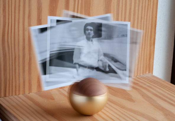 「Pictuary sphere」は、故人の遺品を大切に保管し、いつも傍に置いておくためのメモリアルボックスです。木製の蓋部分の溝に、写真を立てることができます。球体をしているので、小さく揺れるのが特徴。故人にそっと触れるような気持ちで写真を揺らしてみてはいかがでしょうか。