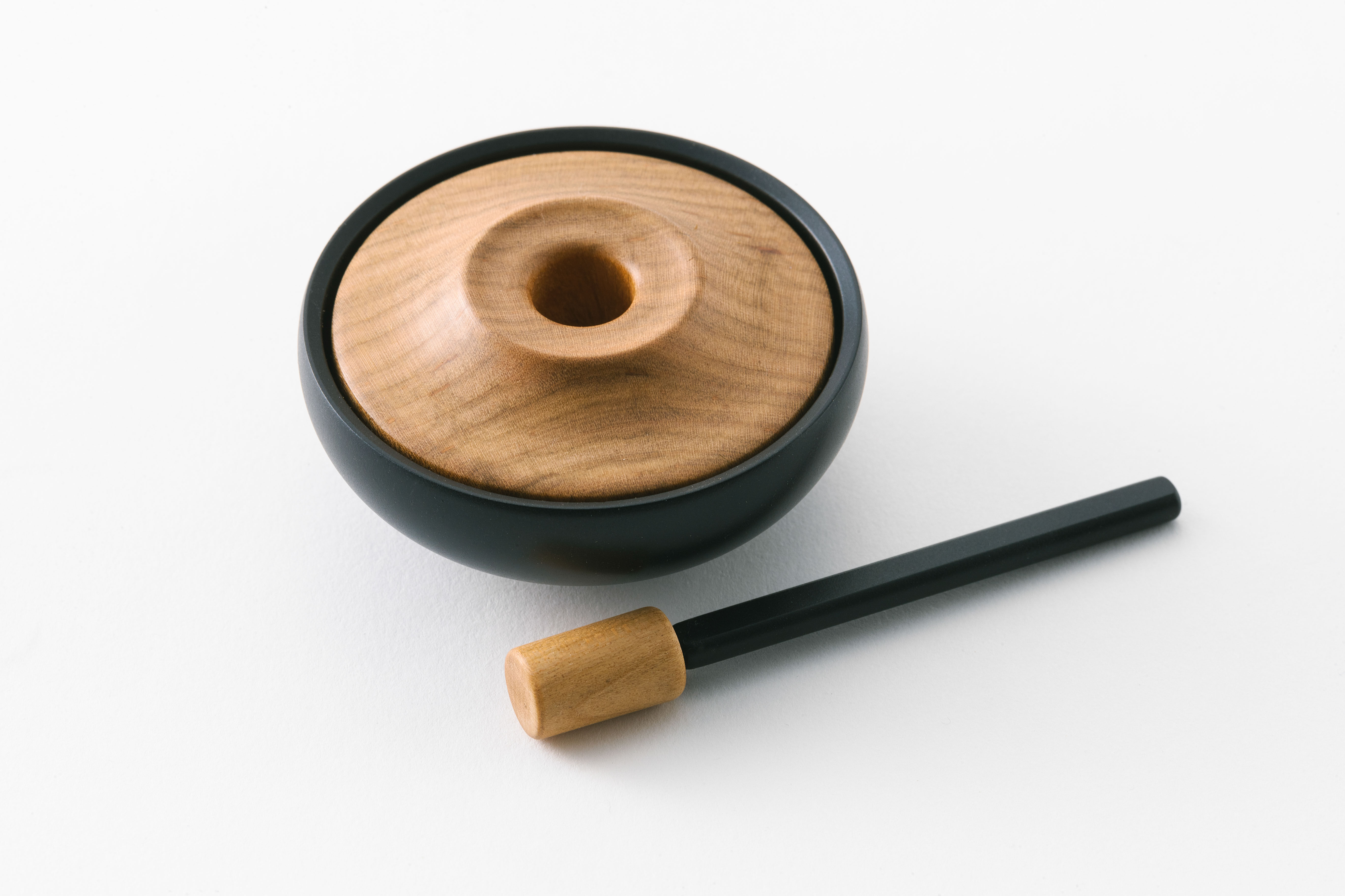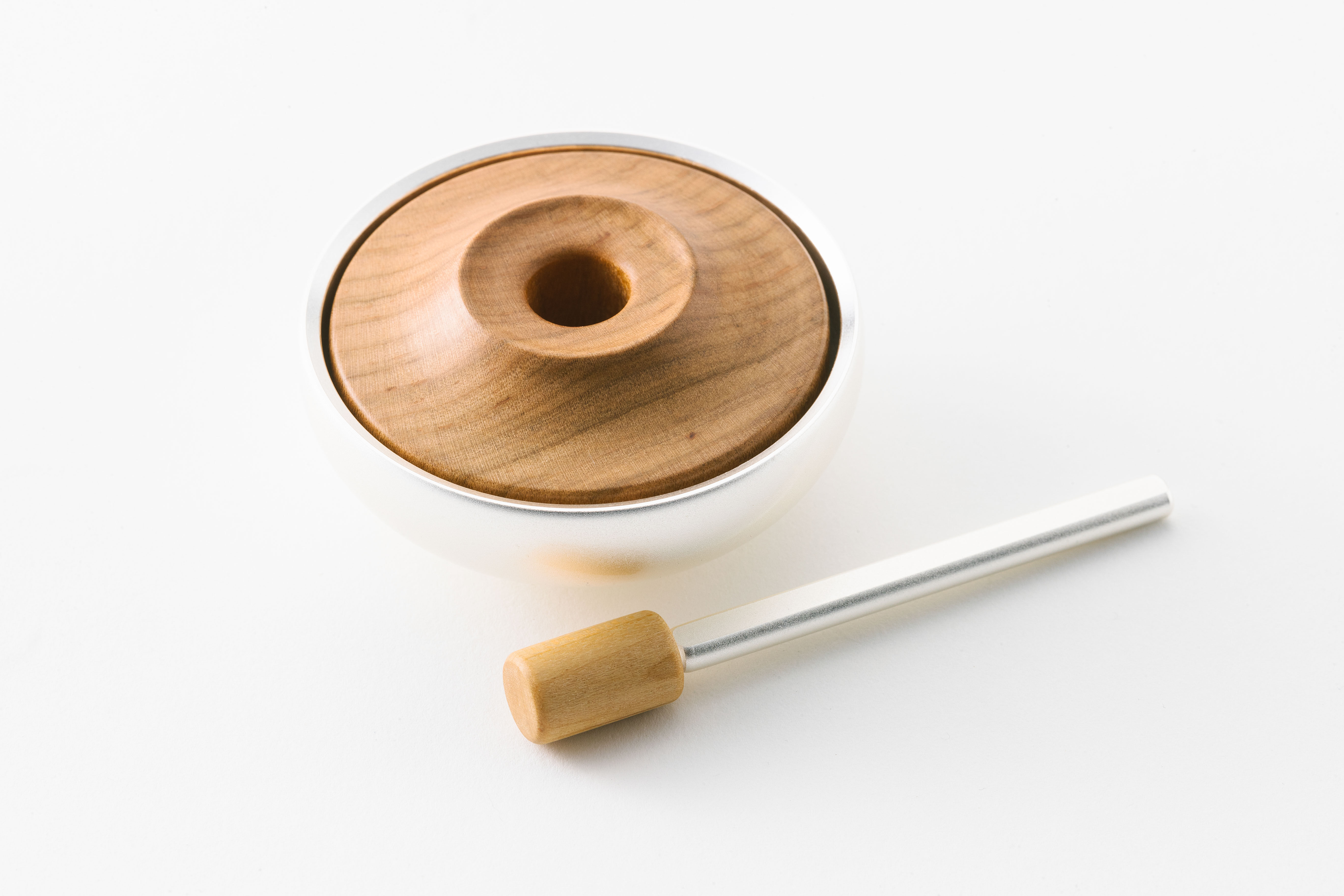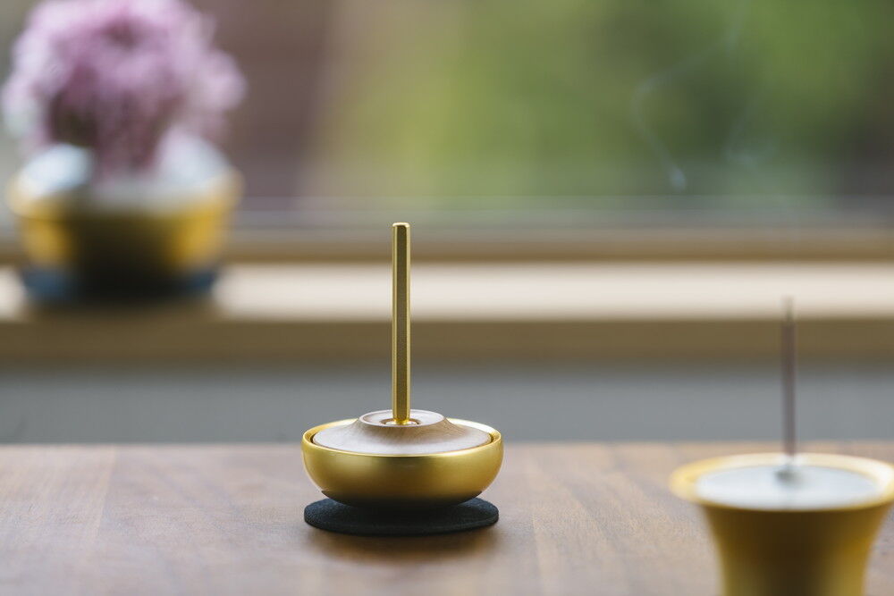 高岡銅器ならではの重厚さはそのままに、光沢感を抑えた金属の質感に自然木のぬくもりを合わせて和室にも洋室にも合うシンプルなデザインに仕上げています。